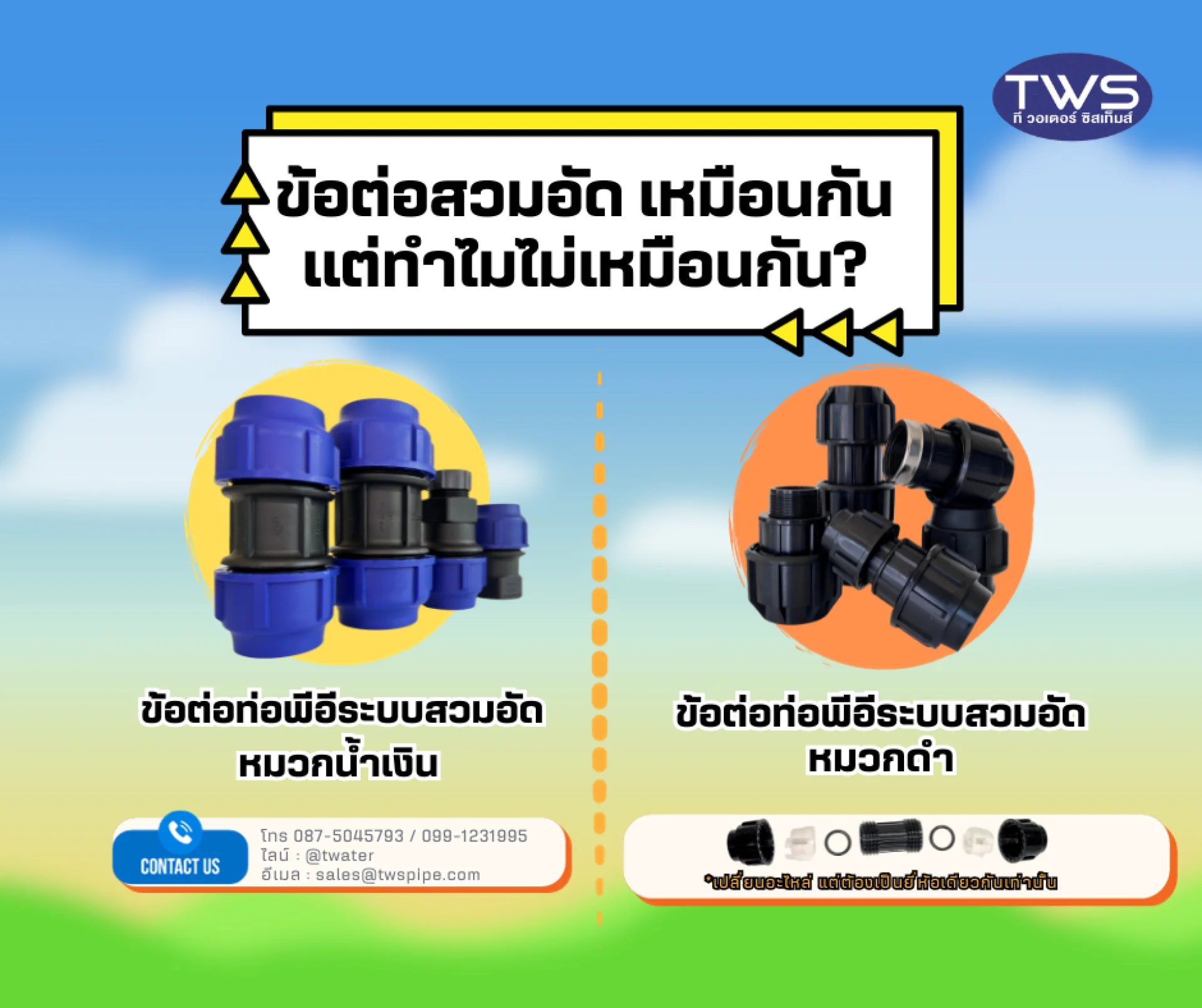 ถามกันมาเยอะมากค่ะ ว่าข้อต่อท่อพีอีแบบสวมอัดสีน้ำเงินกับสีดำ ต่างกันยังไง