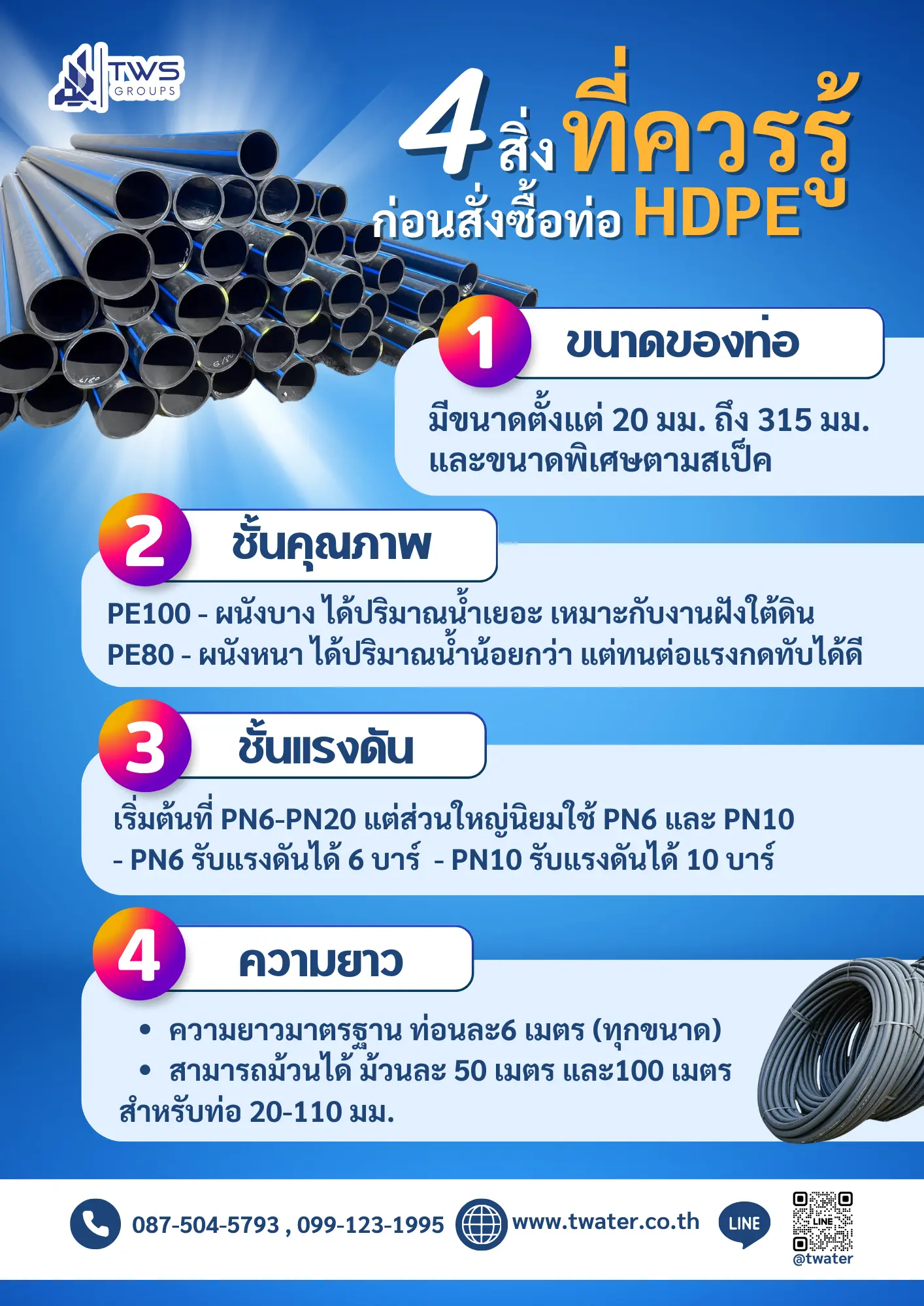 วันนี้ ทีวอเตอร์ซิสเท็มส์ จะพามารู้จัก 4 สิ่งสำคัญ ที่ไม่รู้ไม่ได้ ก่อนสั่งซื้อท่อเอชดีพีอี