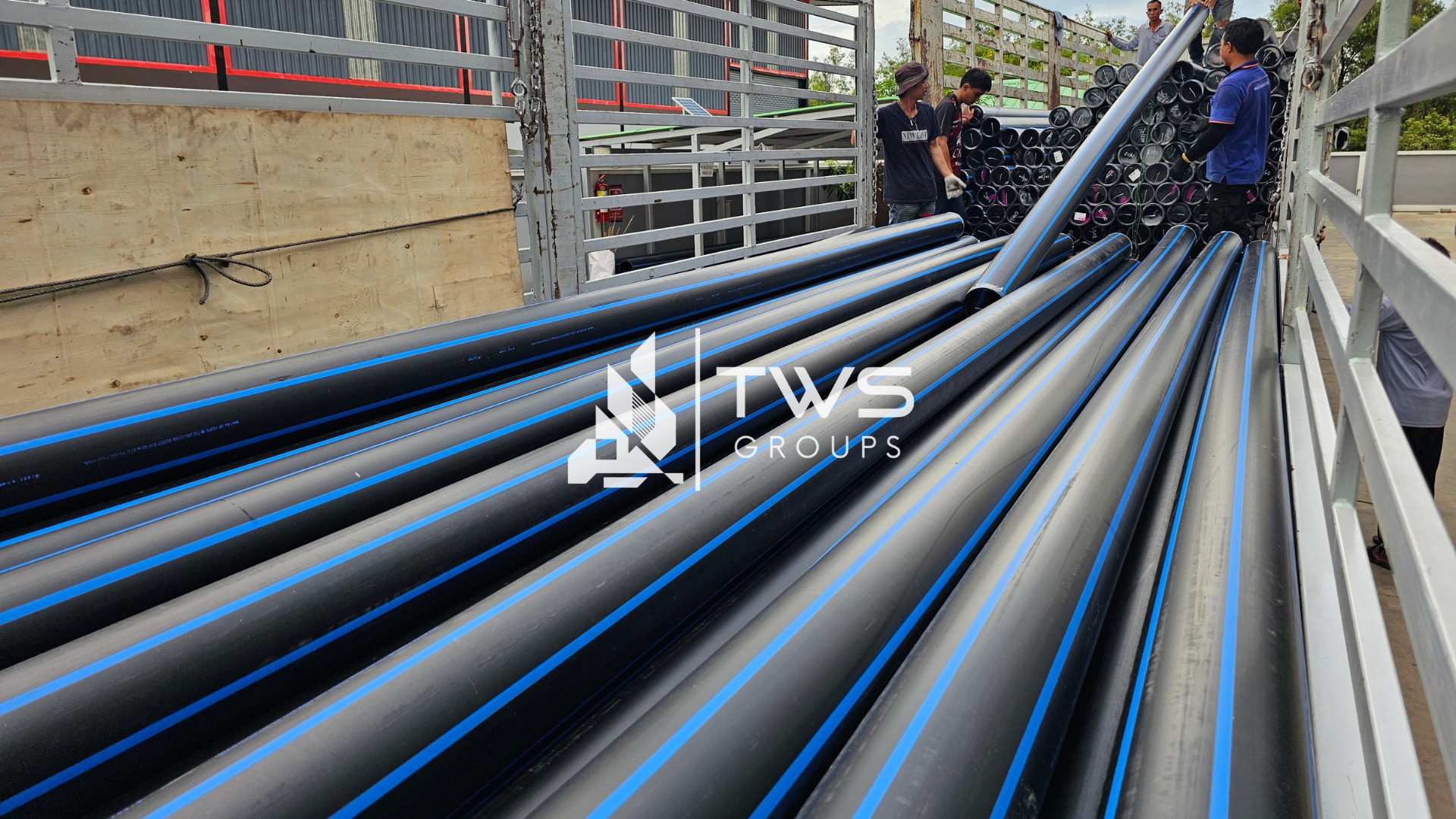 ท่อHDPE ขนาด 110 มม. เป็นท่อหลักออกจากปั๊มน้ำ