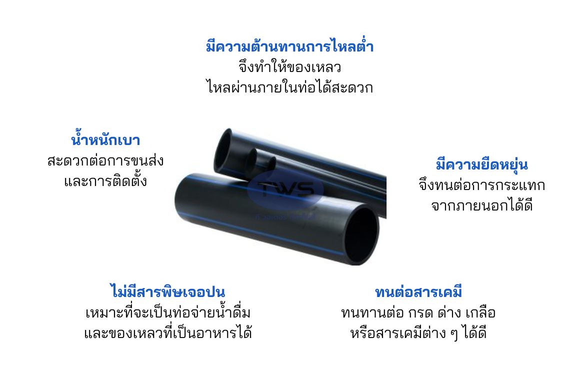 -ไม่มีสารพิษเจอปน เหมาะที่จะเป็นท่อจ่ายน้ำดื่มและของเหลวที่เป็นอาหารได้